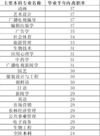 在“2010屆半年內(nèi)離職率較高的主要本科專業(yè)”排名表中,動畫、藝術(shù)設(shè)計、廣播電視編導(dǎo)和編輯出版學(xué)以37%并列位于榜首,高出全國本科畢業(yè)生半年內(nèi)離職率(24%)13個百分點(diǎn)。排名在其后的是廣告學(xué)專業(yè)。語言類中朝鮮語、日語、英語均在離職率較高的排行中。